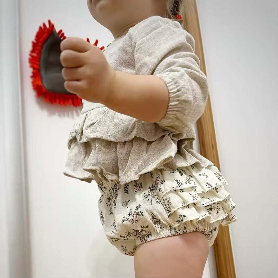 コットンリネンフリルトップスとブルマ
